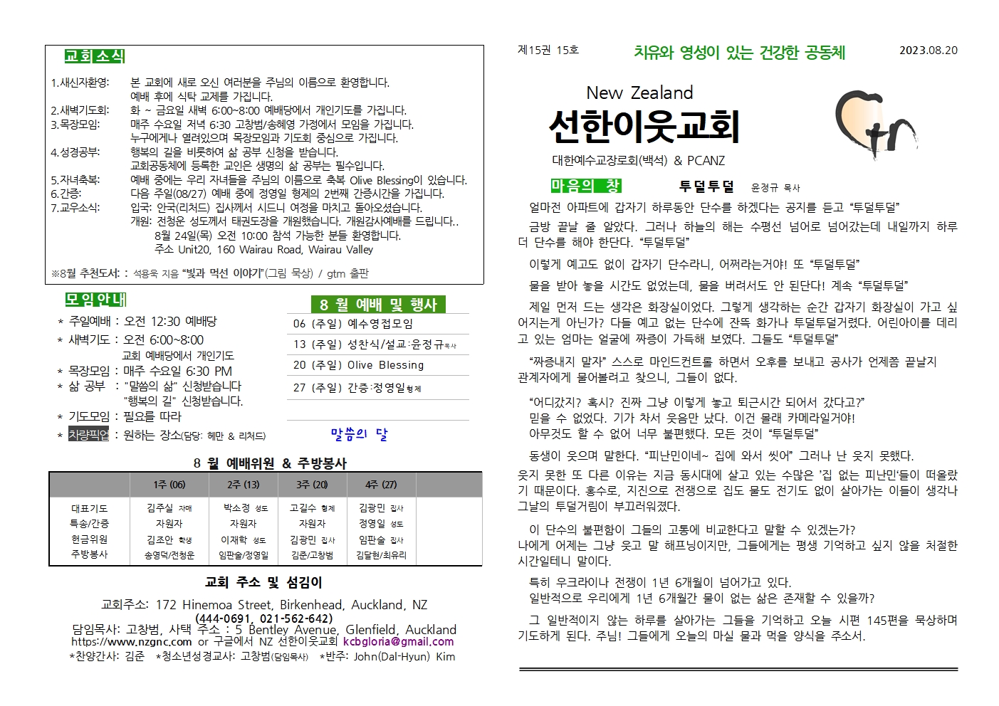 선한이웃교회 일정표