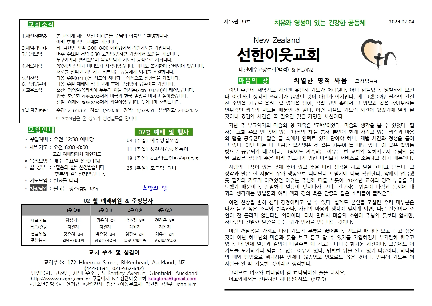 선한이웃교회 일정표