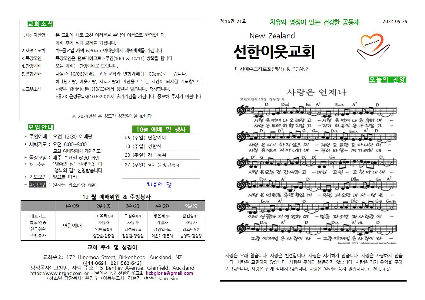 선한이웃교회 일정표