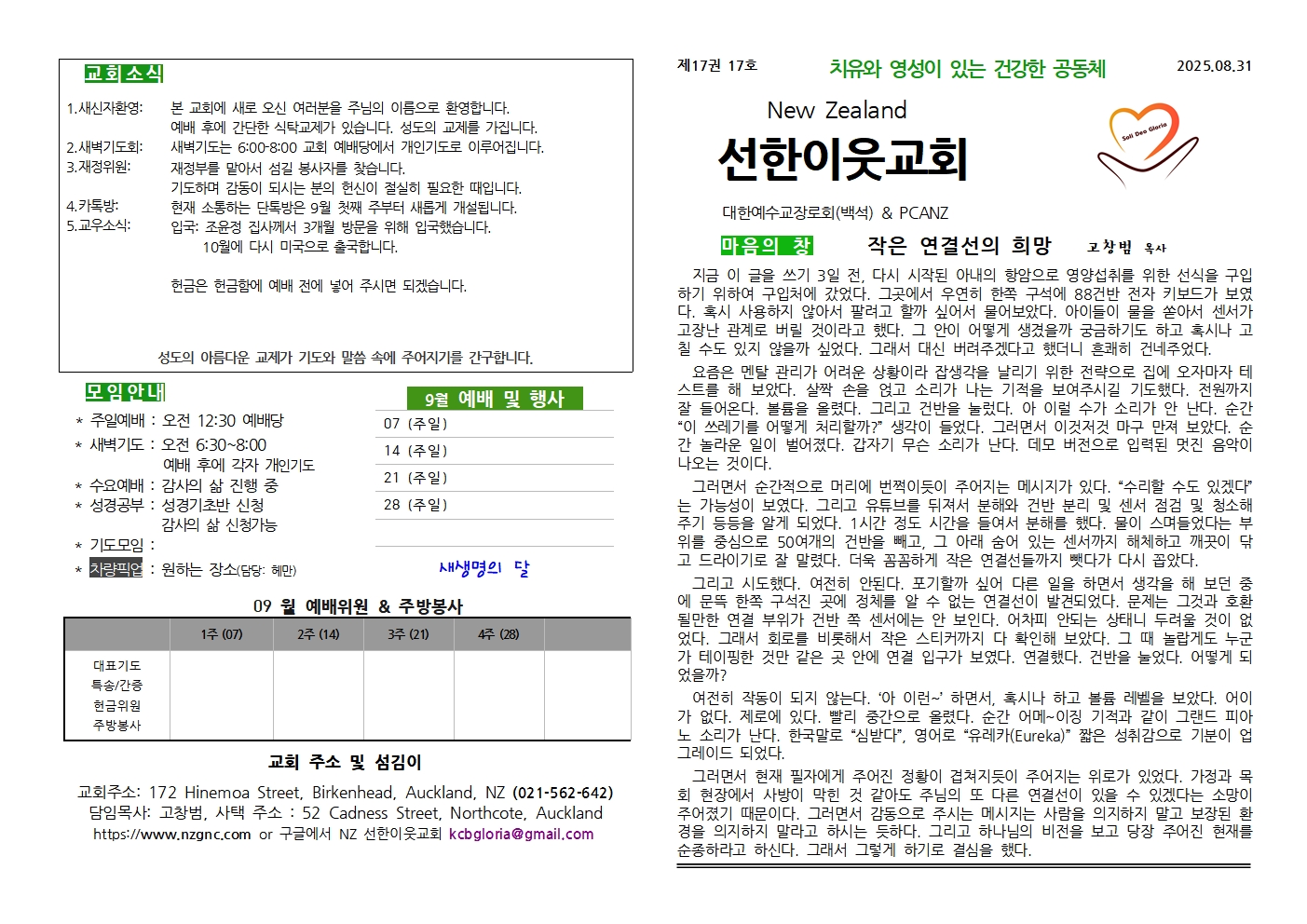 선한이웃교회 일정표