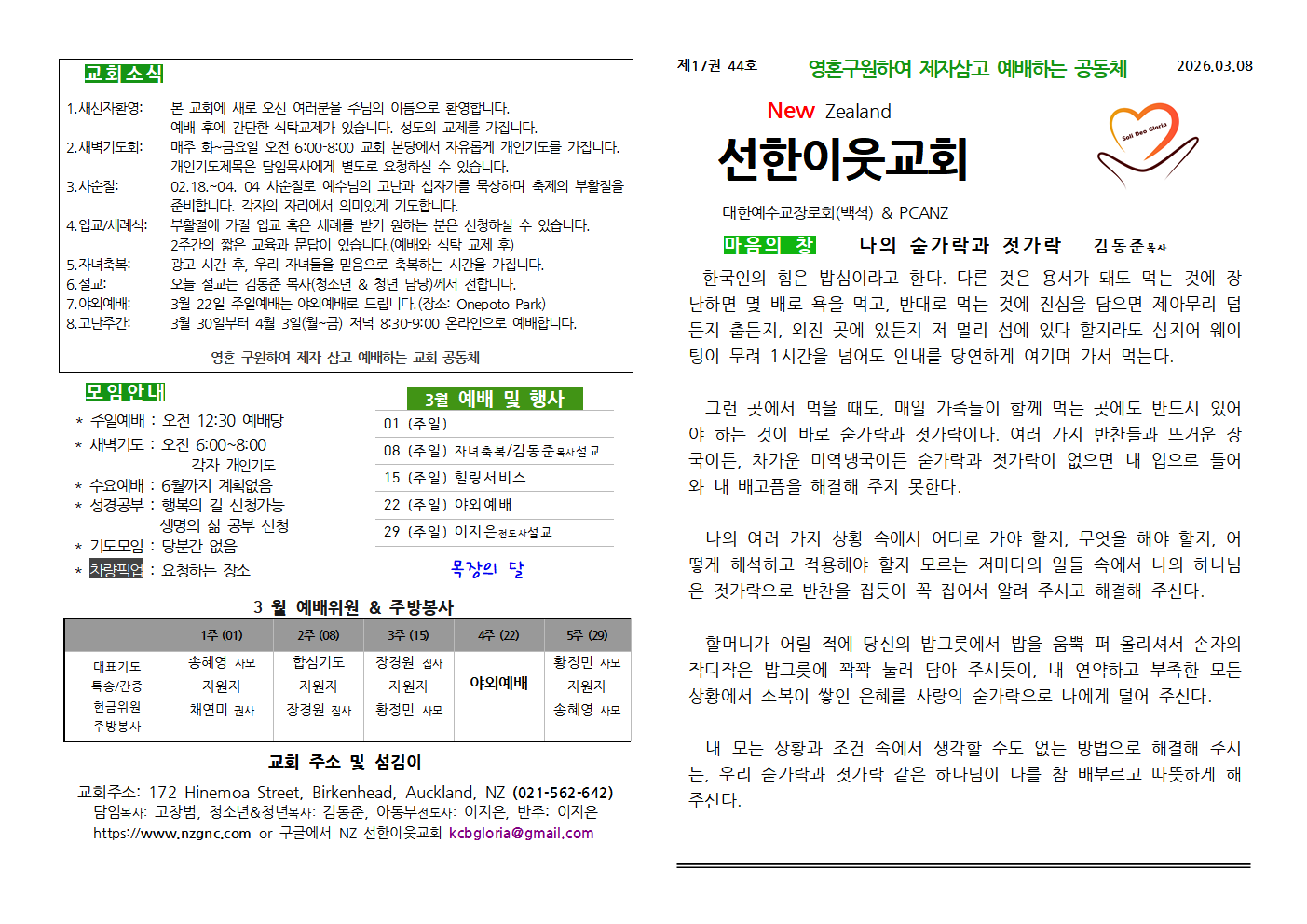 선한이웃교회 일정표